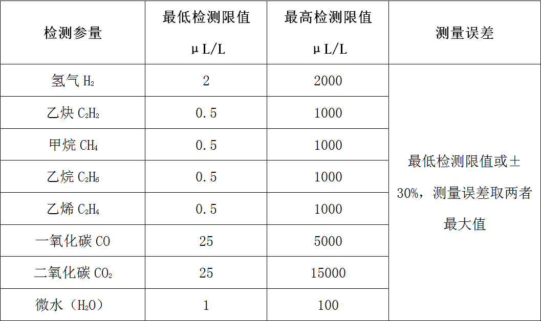 監測變壓器、電抗器等充油高壓電氣設備絕緣油中的氫氣(H2)、一氧化碳(CO)、甲烷(CH4)、乙炔(C2H2)、乙烯(C2H4)、乙烷(C2H6)、二氧化碳(CO2)、微水(H2O,可選)及總烴、總可燃氣體含量等,并實(shí)時(shí)分析、診斷變壓器/電抗器等的運行狀態(tài)。